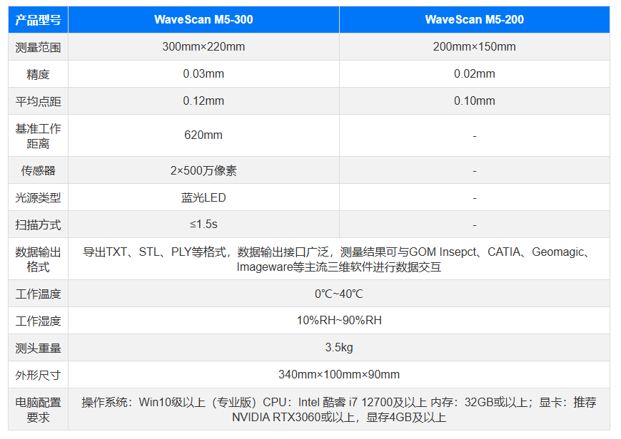 WaveScan-M5是一款经济型的蓝光扫描仪,具有500万像素全局快门工业相机和高分辨率蓝光光栅机,扫描最高精度可达20μm,支持多达1亿顶点数据量。其设计简洁,可靠性高,精度稳定。