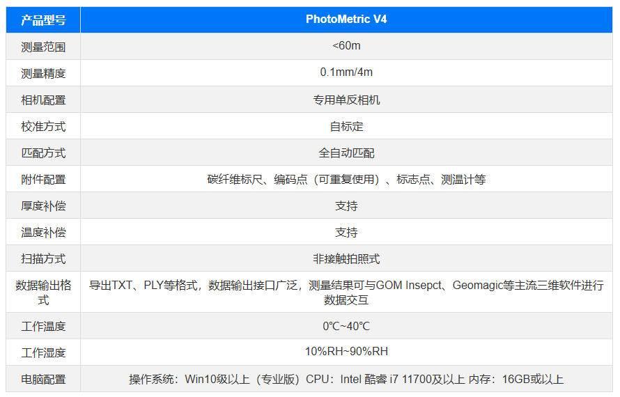 PhotoMetric V4是一款高精度的摄影测量系统,适用于大范围的三维测量,测量精度可达0.1mm/4m。
